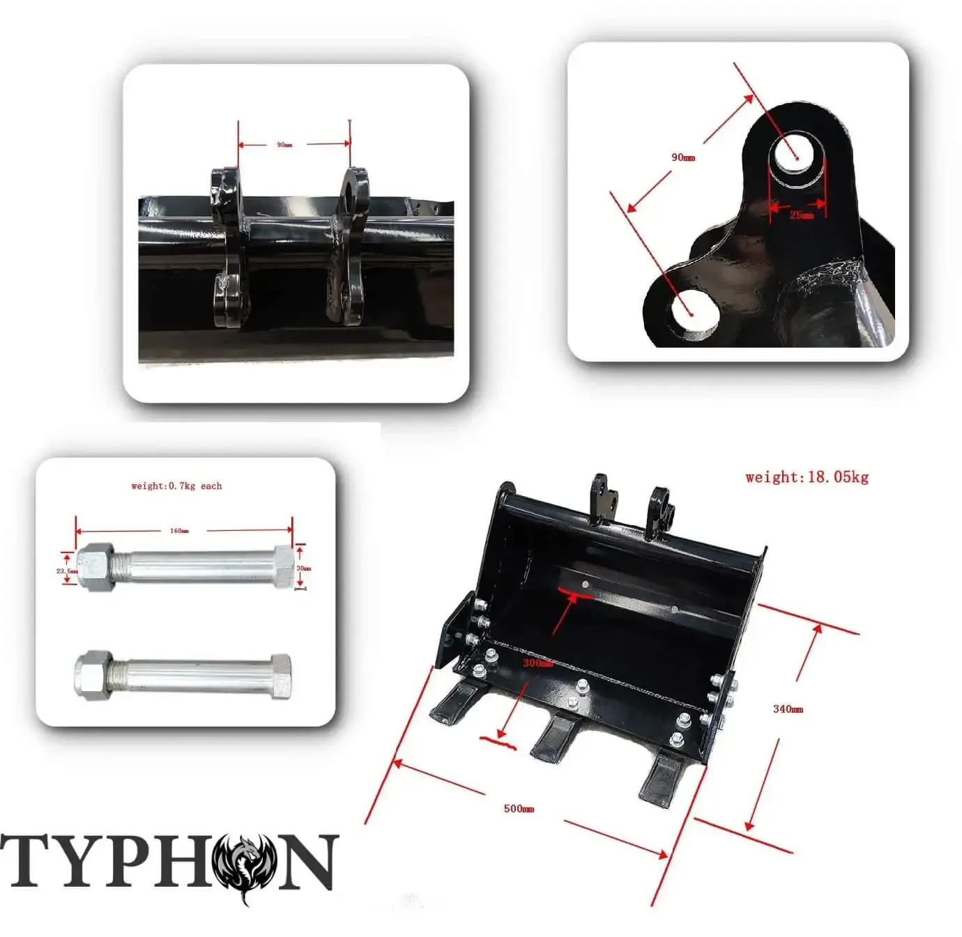 - Compatibility:Â TYPHON Mini-Excavators, Other Heavy Equipment (3 tons and below)
