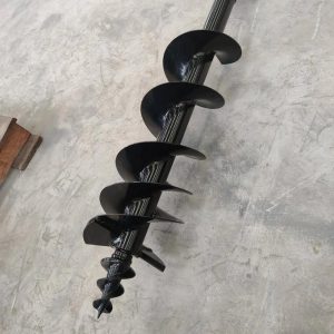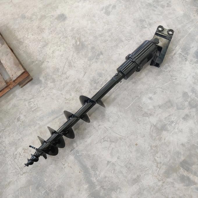 The auger attachment consists of a cylindrical shaft with cutting blades at the bottom and a top-mounted drive mechanism. Driven by the hydraulic system, it rotates to effortlessly dig into the ground, streamlining the digging process.