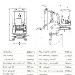 - The micro digger is extremely easy to maneuver, even for first-time users. Possesses a maximum machine height of 2270 mm and a maximum digging depth of 1710 mm.