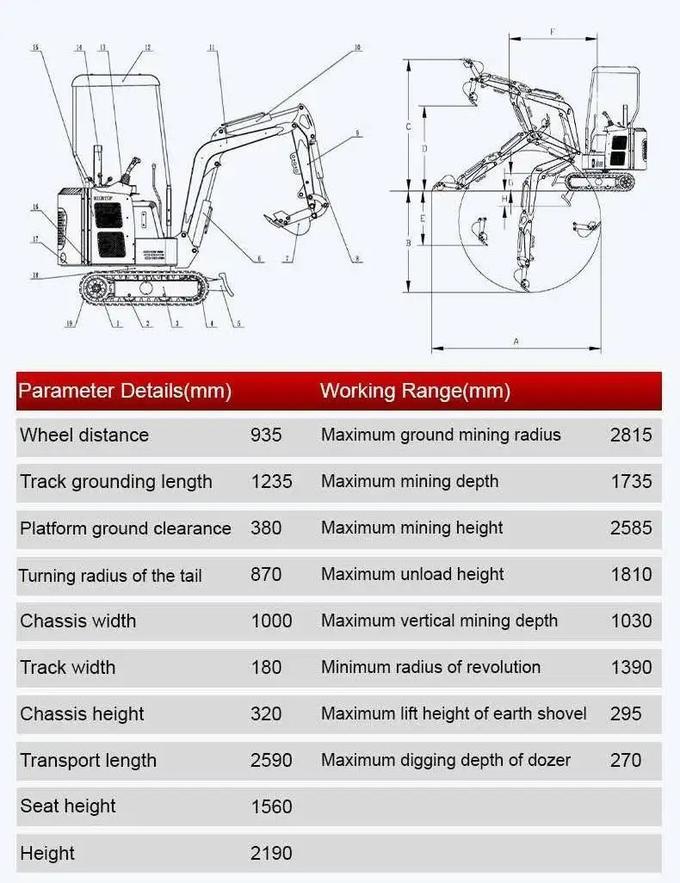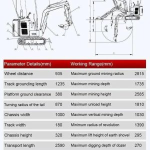 - Ensures easy maneuverability in tight spaces, making it ideal for farms, gardens, public spaces, parks, orchards, and more. Comes with a 870mm tail turning radius and maximum digging depth of 1735mm.