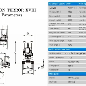 We introduce the TYPHON T ERROR XVIII Prestige Mini Excavator, a 2 ton trench digger that offers elegance and efficiency for small and medium-sized construction projects. This little excavator, with its small but strong construction, is designed for easy mobility in various environments, including farms, gardens, public places, parks, orchards, and more. Let’s investigate the remarkable characteristics defining the TYPHON T ERROR XVIII Prestige.